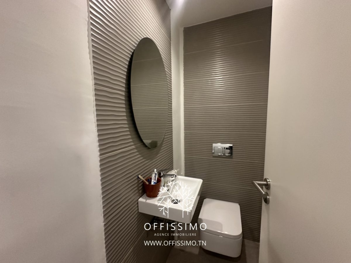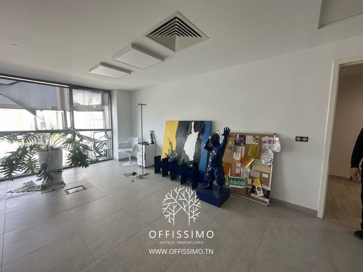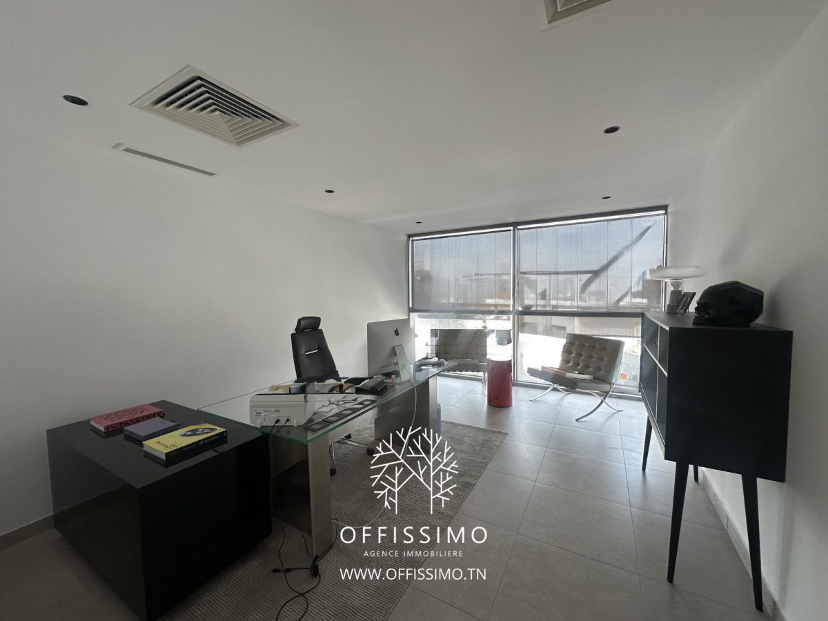 Situé au dernier étage d’un immeuble de haut standing, ce bureau offre une vue panoramique exceptionnelle sur Tunis et le lac.
